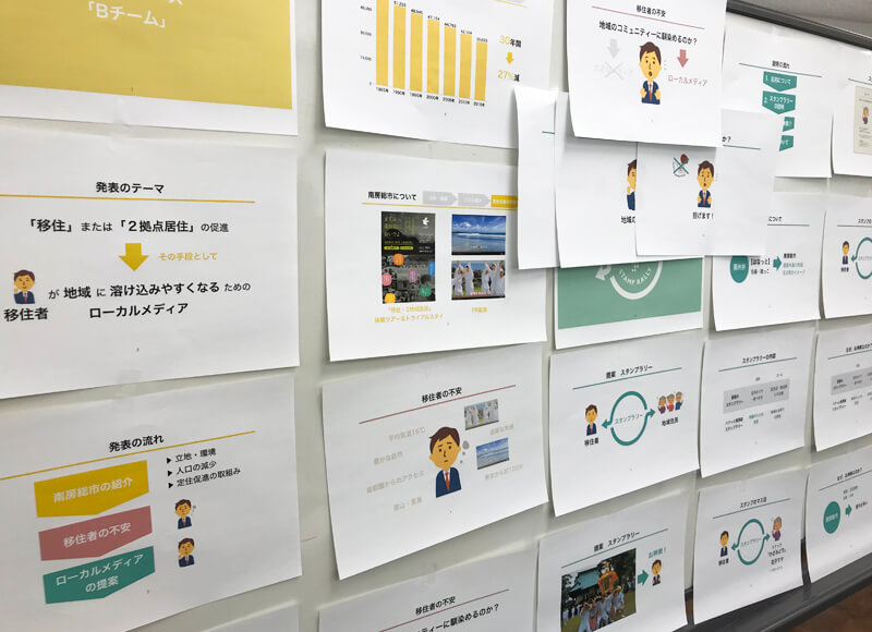 この日にメディアコースで出たプランは2つ。一つは、「野良猫」というローカルな題材に「古民家」というメディアを組み合わせた、「保護猫ゲストハウス」というプラン。地元の女性たちのチームによるものです。もう一つが、東京からの参加者と南房総の地域おこし協力隊の混成チームが考案した「移住者向けスタンプラリー」です。