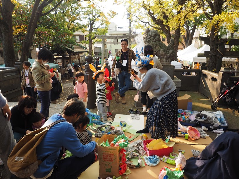 千住の長円寺というお寺の本堂、境内などを二日間お借りし、アートディレクターを日本画家の栗原由子さんに依頼。栗原さんとあだちマーチング委員会のみなさん、千住の大学生、そしてセンジュ出版とで実行委員を担い、ワークショップ、物販、展示、飲食、映画上映などを実施しました。二日間午後の開催で600人を超える来場者、次の年にはお隣の氷川神社境内と社務所で午前中から一日のみの開催、来場者は400人以上。今年は「本とつながるまち」をテーマに、第3回を11月4日に開催予定、今から準備を進めています。