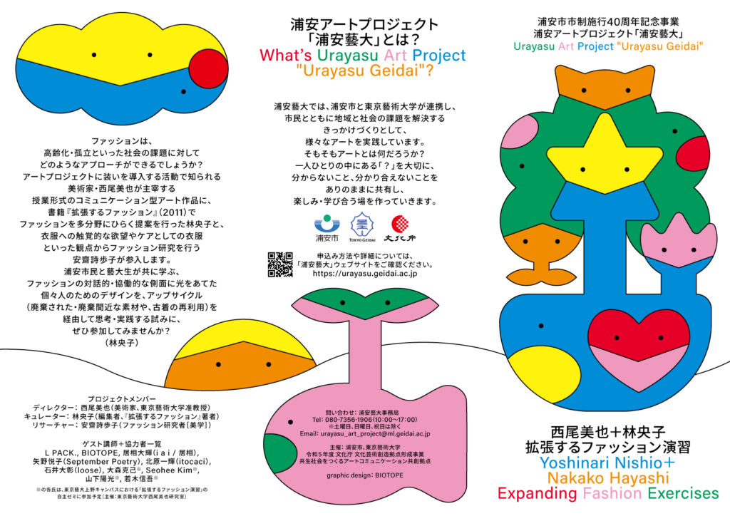 2023年、浦安市と東京藝術大学が連携して行う「浦安藝大」が立ち上がった。そのなかでも、ローカルの高齢化と孤立という課題へファッションからアプローチするのが「拡張するファッション演習」だ。本演習はレクチャー&ワークショップの形式で10月から11月まで、ディレクターに美術家・西尾美也、キュレーターに著述家・林央子を迎えたプログラムである。筆者はリサーチャーとして関わった。ここでは、約一年間のプラグラムを振り返りレポートする。