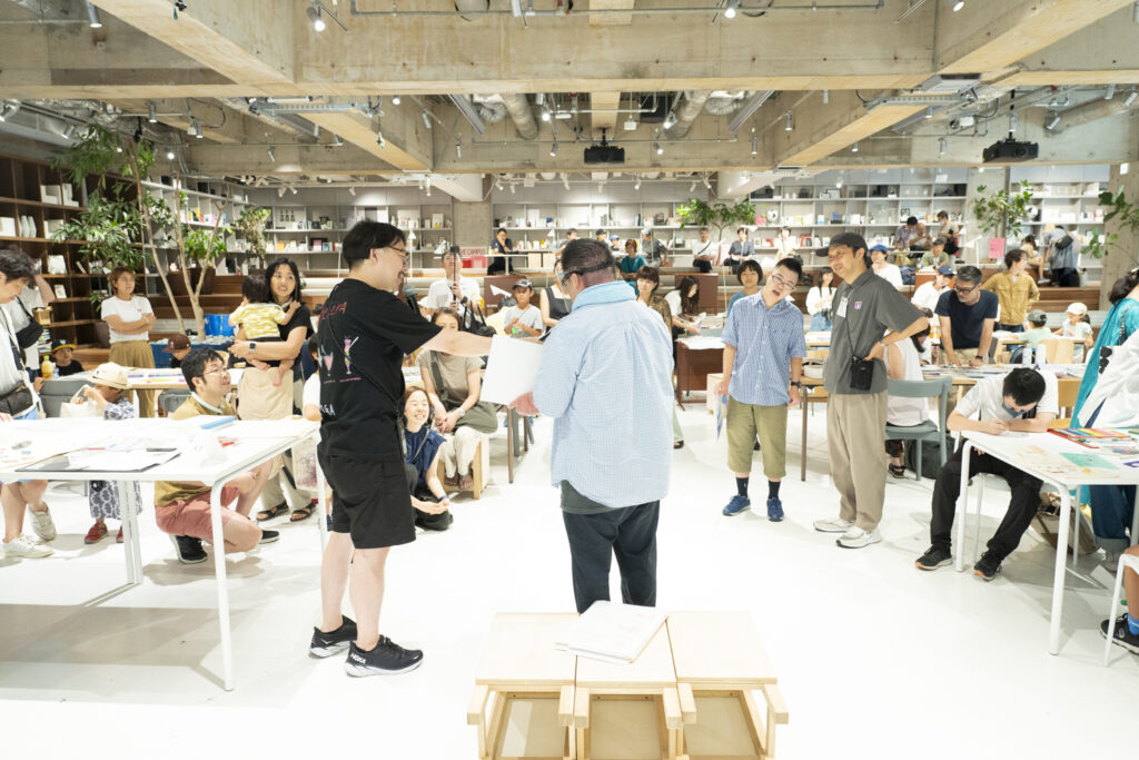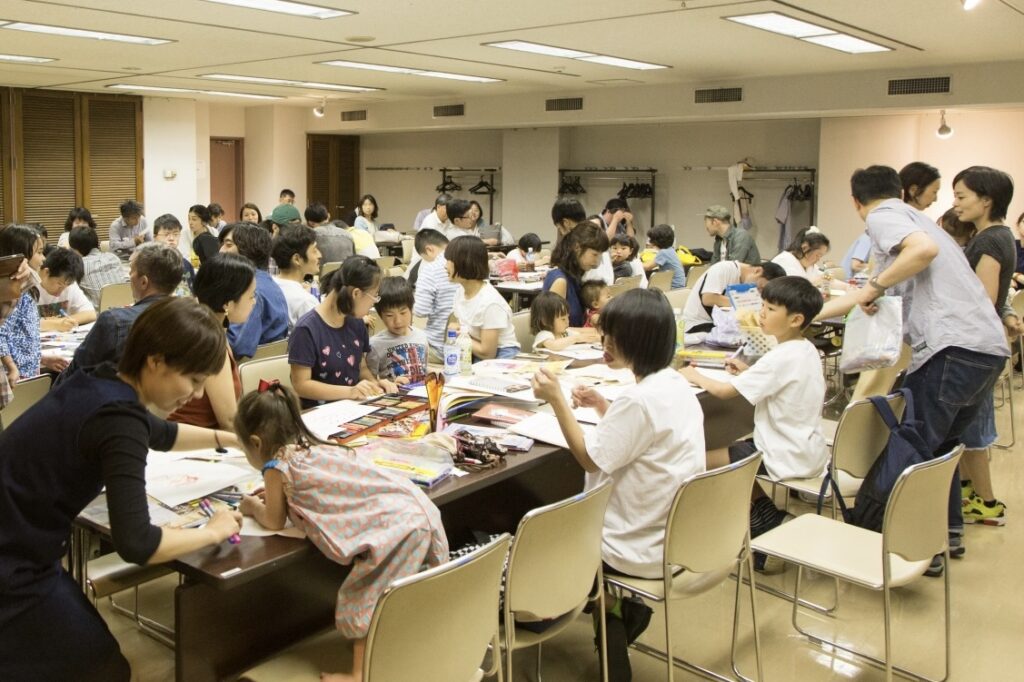 アトリエ・エーの活動はいたってシンプルだ。休日の午前10時に渋谷区の施設に集合し、各々が好きな席で絵や工作の創作に取り組む。ボランティアスタッフとしてデザイナーやイラストレーター、ミュージシャンや編集者など職種も背景も多彩な大人たちがかかわり、そうしたスタッフたちは順々に子どもたちの横に座り、創作に必要なサポートをする。11時を過ぎると、みんなが待ちに待った発表の時間だ。