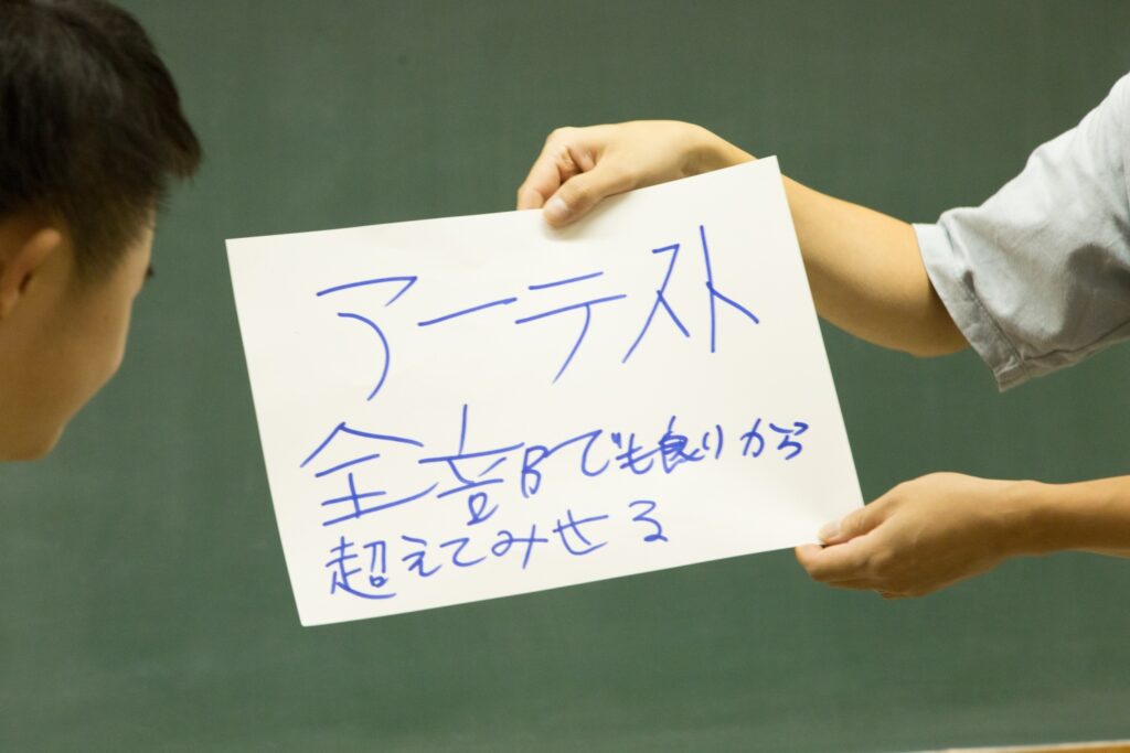 「アトリエ・エーでの発表の時間、子どもたちに一番近い場所からその表情を見ていて毎回感じることは、彼らは本当に全身全霊で一生懸命に思いを伝えようとしているということです。話すことができなくても、うまく言葉にならなくても、こんなに一生懸命に伝えようとしてくれているのだから、僕は絶対に聞き逃してはいけない、全部を受け止めたいと思って、いつも子どもたちに向き合っています。そんな時、ふと教室を見渡すと、たくさんのスタッフが一緒に向き合ってくれていて、最後列にはそれを本当にうれしそうに見守る子どもたちのお父さんやお母さんがいます。アトリエ・エーとはそういう場所です」(赤荻さん)