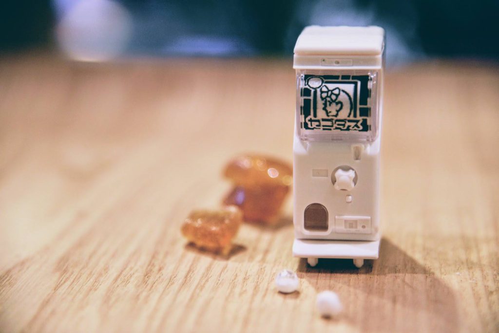 西京チームは桂川で獲れた鮎や伝統的な桂飴を洛中に向けて行商していた「桂女」に注目。「桂女」は、こうした行商以外に巫女、助産婦、予祝芸能者など多様な役割を担っていたと諸説ある。現在、西京区にある洛西ニュータウンでは子育て世代の女性の働く場が少ないという課題がある。そこで、桂女というモチーフを活かしながら、子育て世代の女性を応援する「ガチャガチャ」を考案した。