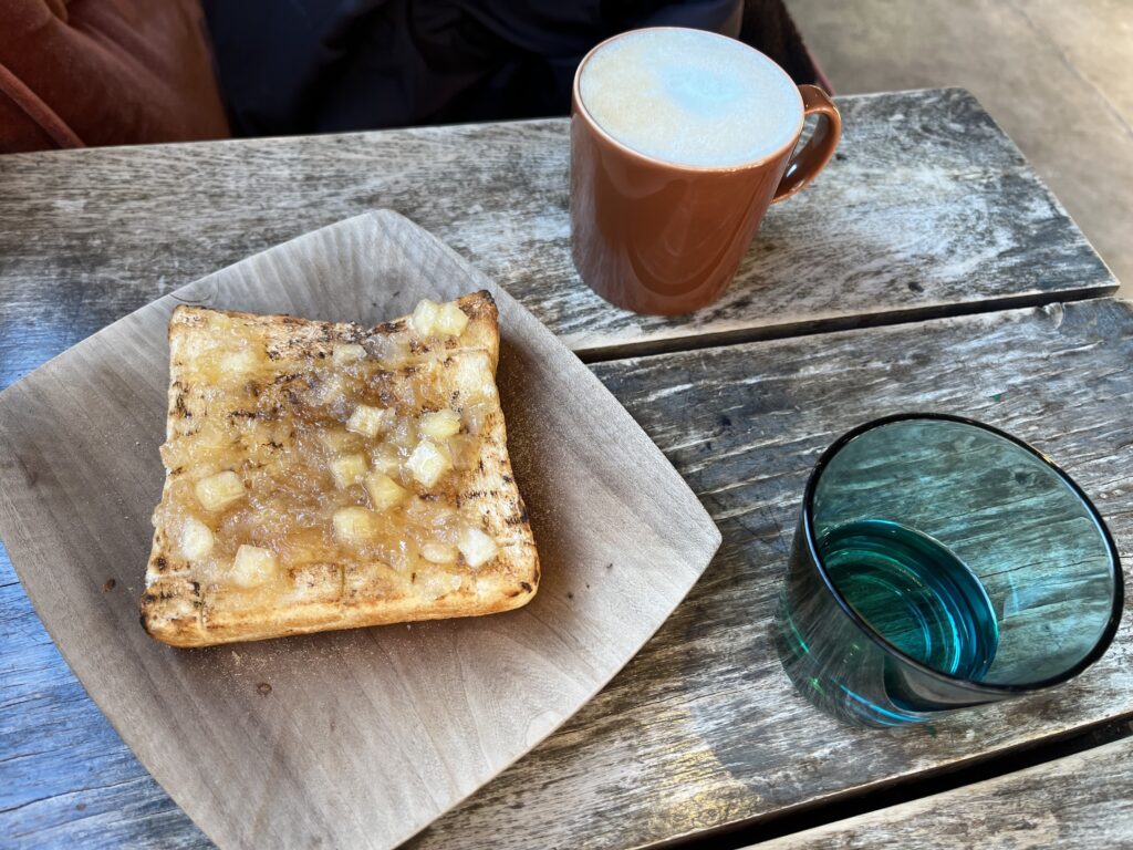 実際に滞在した印象として、今も繰り返し思い出すのは、目覚めた朝、石油ストーブで部屋が暖まるのを待ち、布団にくるまりながら、曇り空を眺めていたこと。ブックカフェ〈栞日〉の2階で、本を読みながら焼きたてのトーストとコーヒーが運ばれてくるのを待っていた時間。