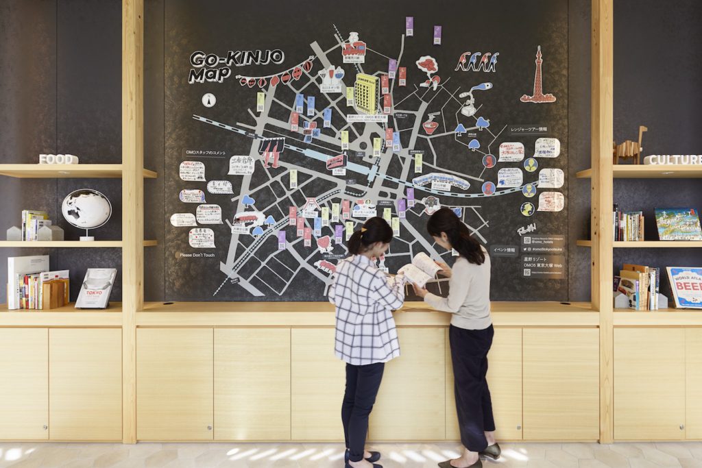 “寝るだけでは終わらせない、旅のテンションを上げる都市観光ホテル”をコンセプトに、ワクワクする仕掛け満載のゲストルームのみならず、友人ガイドとまち歩きができる「OMOレンジャー」やオリジナルの「ご近所マップ」などのサービスで、旅行者とまちをつなぐ媒介の役割も果たす。