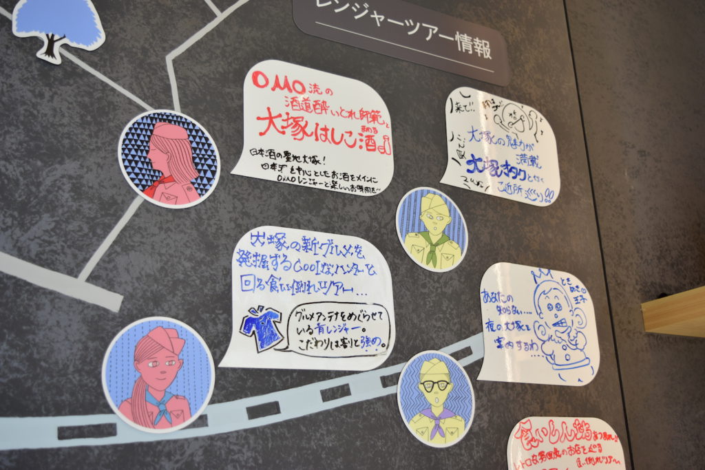 「OMOレンジャー」は、大塚を知り尽くした宿泊客の友人ガイド。散歩・はしご酒・昭和レトログルメ・大塚ニューグルメ・ナイトカルチャーといった5つのジャンルから興味をひかれたものを選べば、ローカルスポットに案内してくれるサービスだ(散歩以外は有料。2時間1,000円/1人、飲食料別途)。