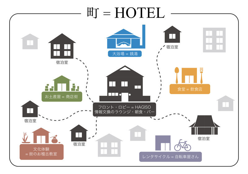 まち全体をホテルに見立てた「hanare」
