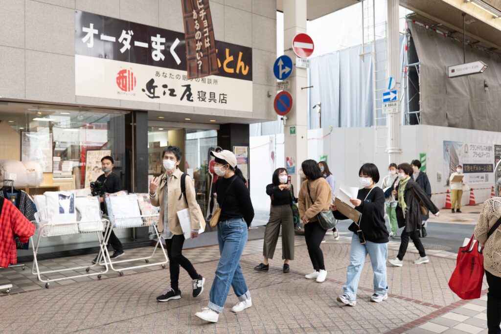 市内に著名なアーティストの作品を展示するだけでなく、市⺠をアートコミュニケーターとして育成する取り組みも行われる。取材日も、商店街にあるクリエイティブ・スペース赤れんがで、過去に「やまぐち新進アーティスト大賞」を受賞したアーティストの展覧会「やまぐちアートピクニック」のワークショップが行われていた。まち歩きを楽しみながらアートに触れるという企画に、若者から年配までが集い、交流が行われていた。