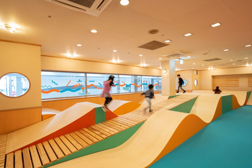 「山口井筒屋というデパートの2階で『コロガルあそびのひゃっかてん』を展開しています。これは2012年からYCAMが実施している子ども向けの遊び場『コロガル公園シリーズ』の最新版です。先ほど触れた『water state 1』や『やまぐちアートコミュニケータープログラム』も山口市が実施する、アートによってエリアの価値を高める事業の一環です」(渡邉さん)