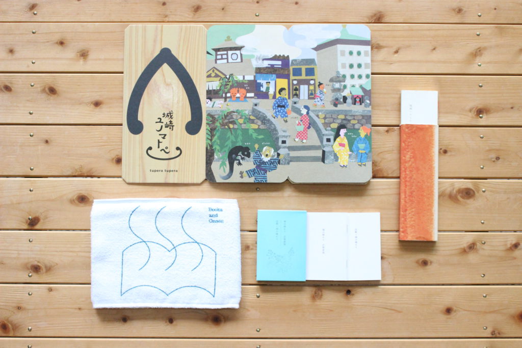 現地でしか買えない、ネットでも販売しない【地産地読】の商品として販売してきた「本と温泉」の作品も、城崎温泉の商店への応援と、外出自粛により自宅で過ごすことの多い方々に少しでも温泉気分を味わっていただくことを目的に、各商店のネットショップでの販売を期間限定で開始しました。