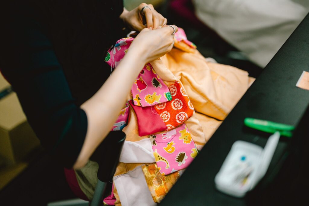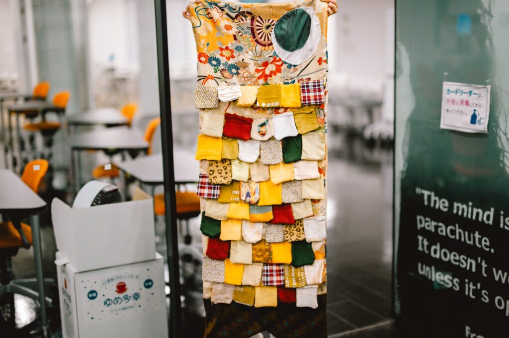 集めた古布を学生がパッチワークし、こいのぼりにして掲げるプロジェクトです。