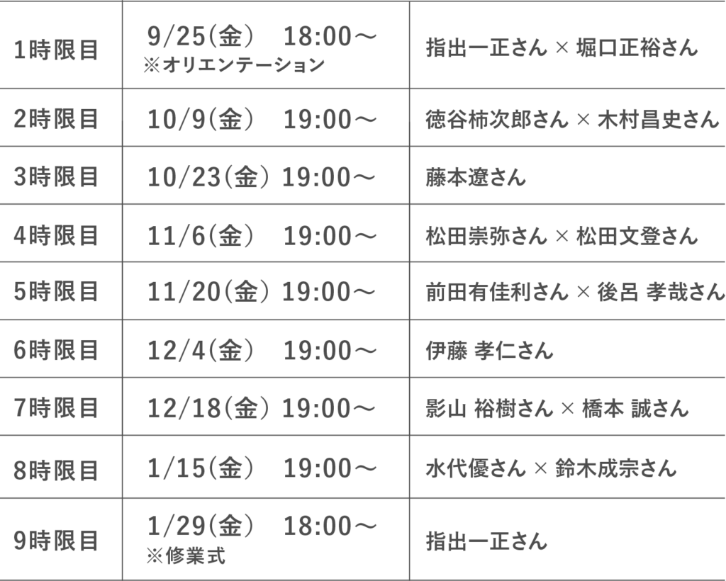 本校生の募集は9/17〆切、各回の聴講は随時募集中です。