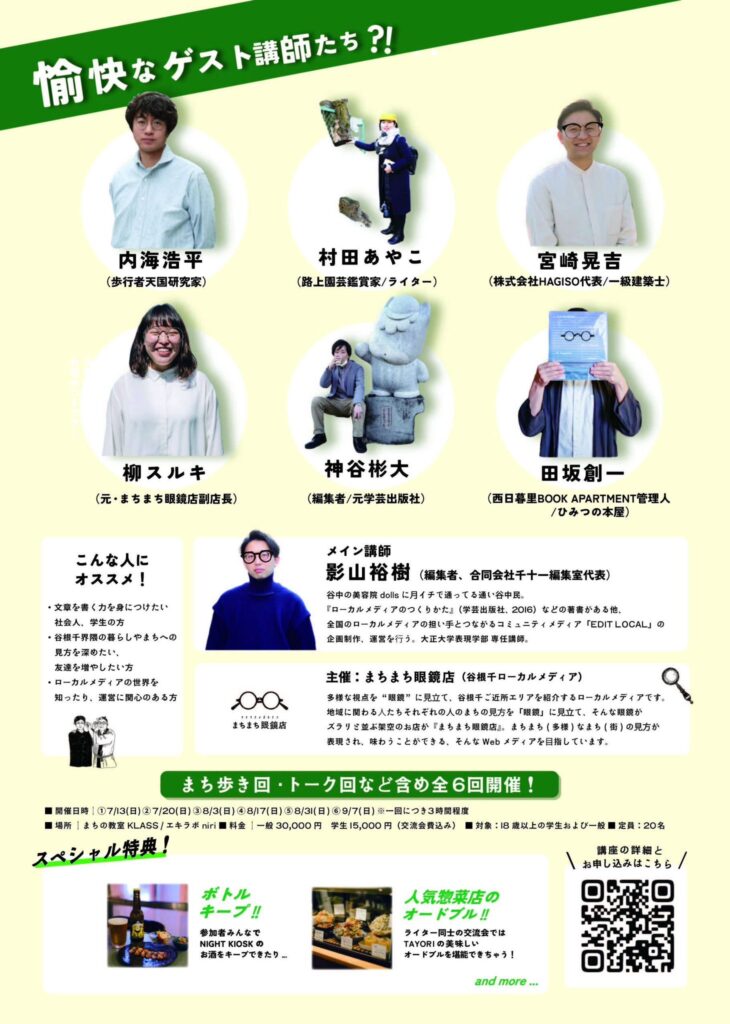 谷根千ご近所のローカルメディア・まちまち眼鏡店で、この夏、まちまち眼鏡店ライター講座が開催されます。