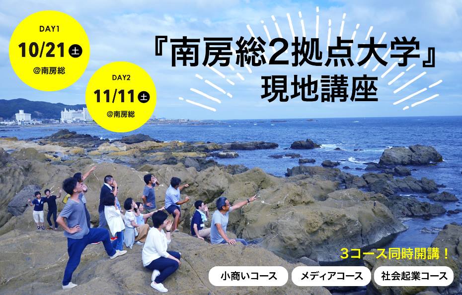 10/21(土)と11/11(土)の全2回で開講する現地講座「南房総2拠点大学」では、“ローカルビジネス”を「小商い」コース、「社会起業」コース、「メディア」コースの3つに分けることで、参加者それぞれのニーズにあった講座をご用意いたします。